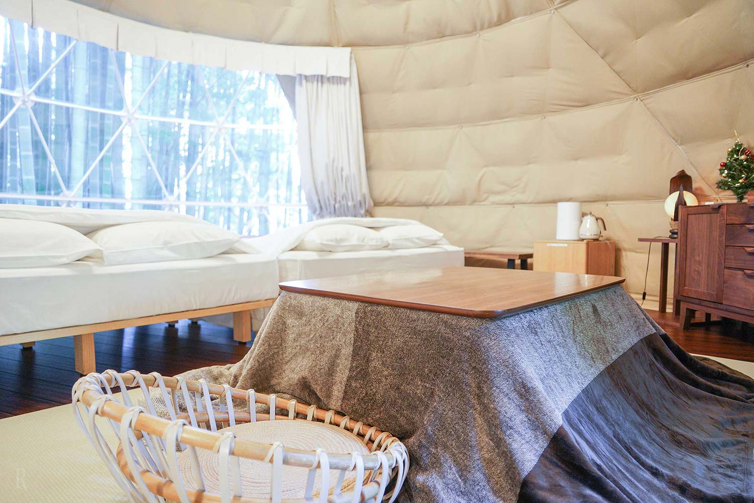 ゲストハウスの中はエアコンを完備。どの季節でも快適にお過ごしいただけます。